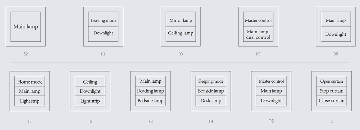 可對全屋燈光進行智能控制與管理,包括智能開關、一鍵場景、燈帶RGB調色。可對 客廳、主臥、2個小孩房的窗簾進行自動開、關、停控制。| 客廳、主臥、2個小孩房實現高品質背景音樂享受。一樓入戶門廳、樓梯間區域智能燈光人體感應各房間配比智能插座共41個,實現智能控制可視音樂云門鈴,自定義門鈴音樂。悠達APP及背景音樂控制面板管理全屋悠達智能設備。