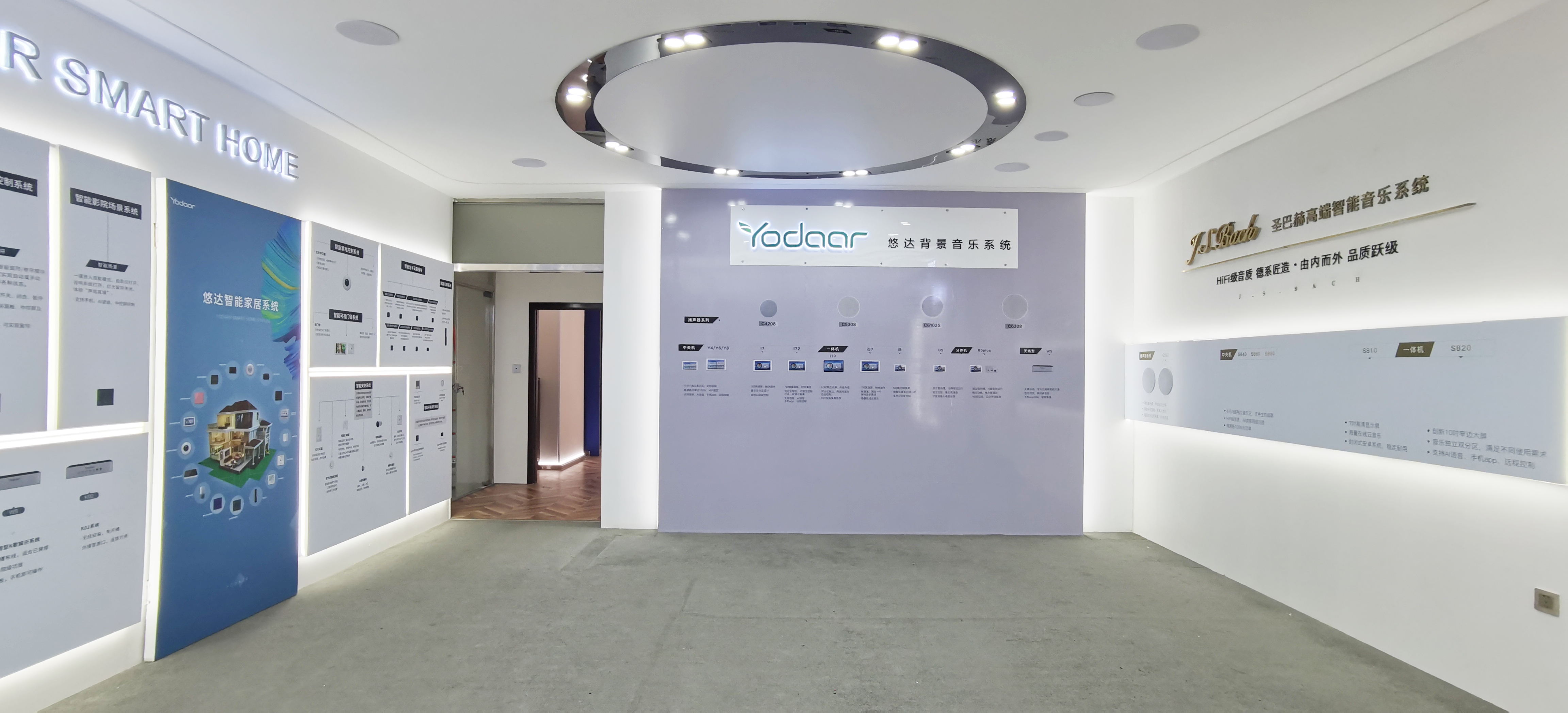 產品展示區涵蓋了悠達智能家居全系產品、不同系列背景音樂系統、圣巴赫高端智能音樂系統,不同版塊分區明確,參觀動線清晰合理,既展示出了悠達豐富齊全的產品線,也方便了客戶參觀。