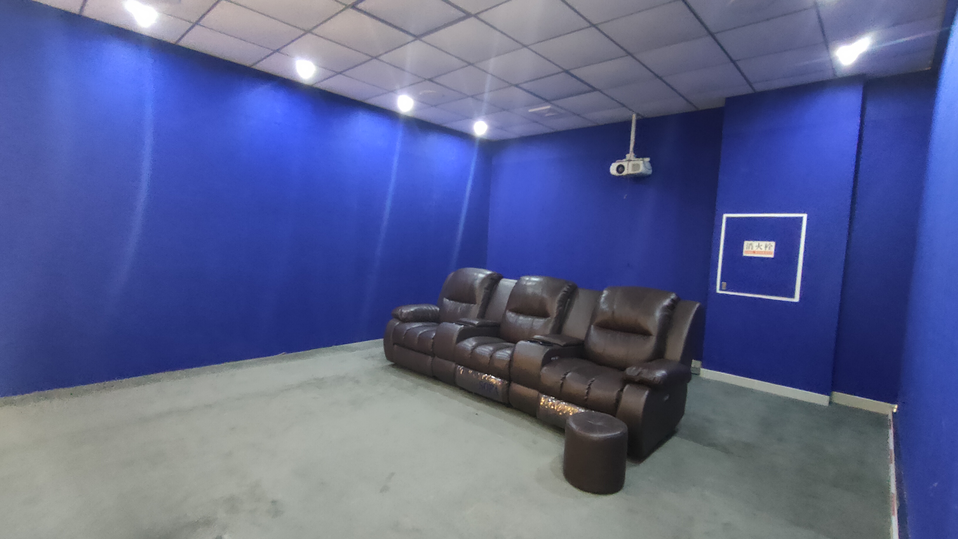 家庭影院由高清投影機、巨型幕布、專業音箱、座椅、智能燈帶等組成,可以打造出影院級的視聽效果。用戶參觀產品與樣板間之余,可以在智能影院區一鍵打開“觀影模式”,享受沉浸式的觀影體驗。