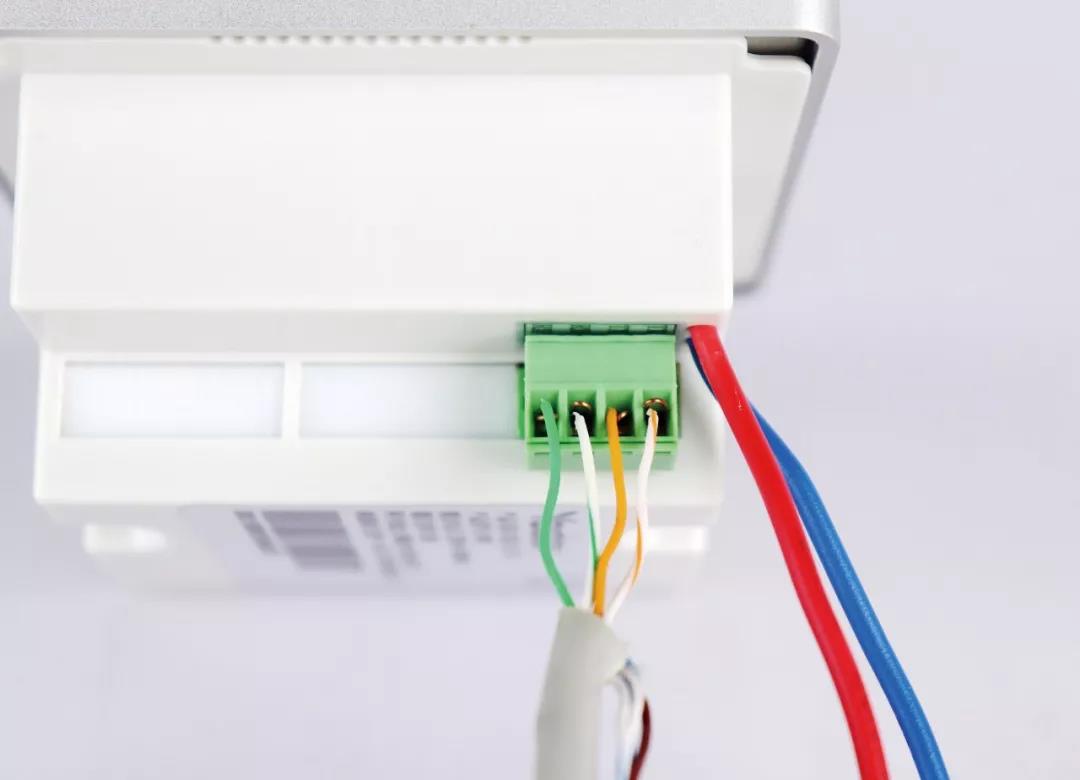 可視對(duì)講模塊背面是網(wǎng)線的接線插口與電源的連接線。
