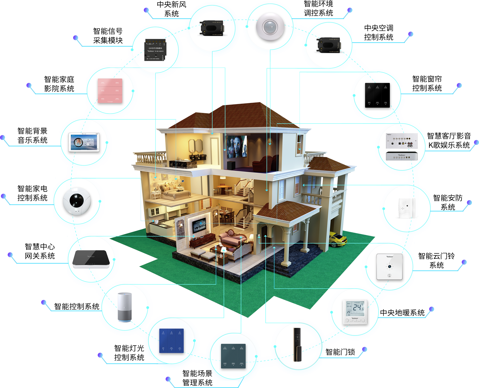 悠達智能家居涵蓋了智能中央控制系統、智能燈光、智能窗簾、智能場景管理、智能安防、智能可視門鈴、智能背景音樂系統、智能家電控制、智慧客廳影院K歌娛樂系統、智能環境監測及調控系統等在內的全屋智能產品,可以為用戶提供完整的智能家居解決方案,打造全屋智能家居生活。