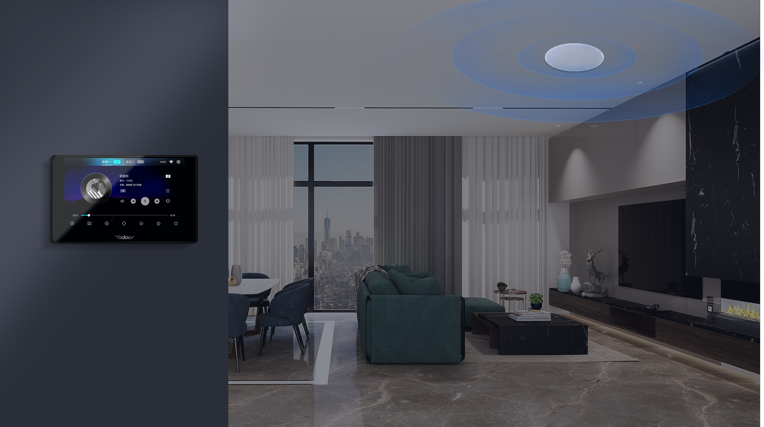 在悠達提供的音樂智能家居生活中,各項操作并沒有變得更復雜,反倒是更為智能便捷。支持AI語音、手機app、觸控屏、手機遠程等各種智能控制方式只是基本的,最關鍵的是智能中控屏可以一屏多用,深度實現了背景音樂與智能家居的一體化控制。