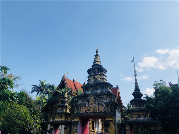 吃過頗具特色的象餐,全員一行接著走進(jìn)西雙版納最古老的公園——曼聽公園。在這個(gè)有著1300 多年歷史的公園里,我們得以感受到作為傣王御花園的華麗與莊嚴(yán)。園內(nèi)濃蔭蔽日、百花爭(zhēng)艷,充滿傣族文化特色的皇家建筑讓人忍不住拍照留念。