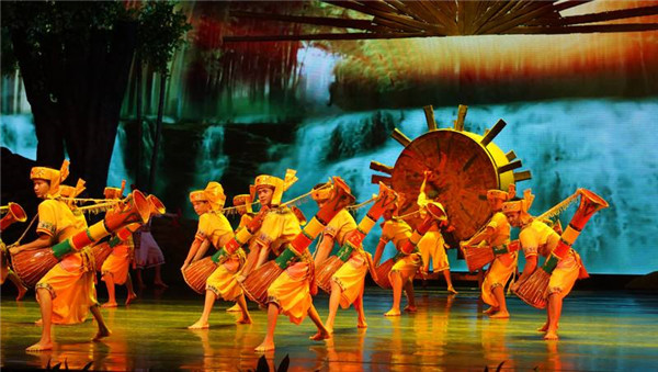 如果說白天所到之處讓人感受更多的是靜態(tài)之美,那夜晚的“瀾滄江·湄公河之夜”歌舞篝火晚會(huì),則更多展現(xiàn)了這個(gè)少數(shù)民族聚集地的特色風(fēng)情。哈尼族、布朗族、布依族……不同民族的姑娘小伙載歌載舞,為我們呈現(xiàn)了一場(chǎng)美輪美奐、異彩紛呈的舞臺(tái)表演。