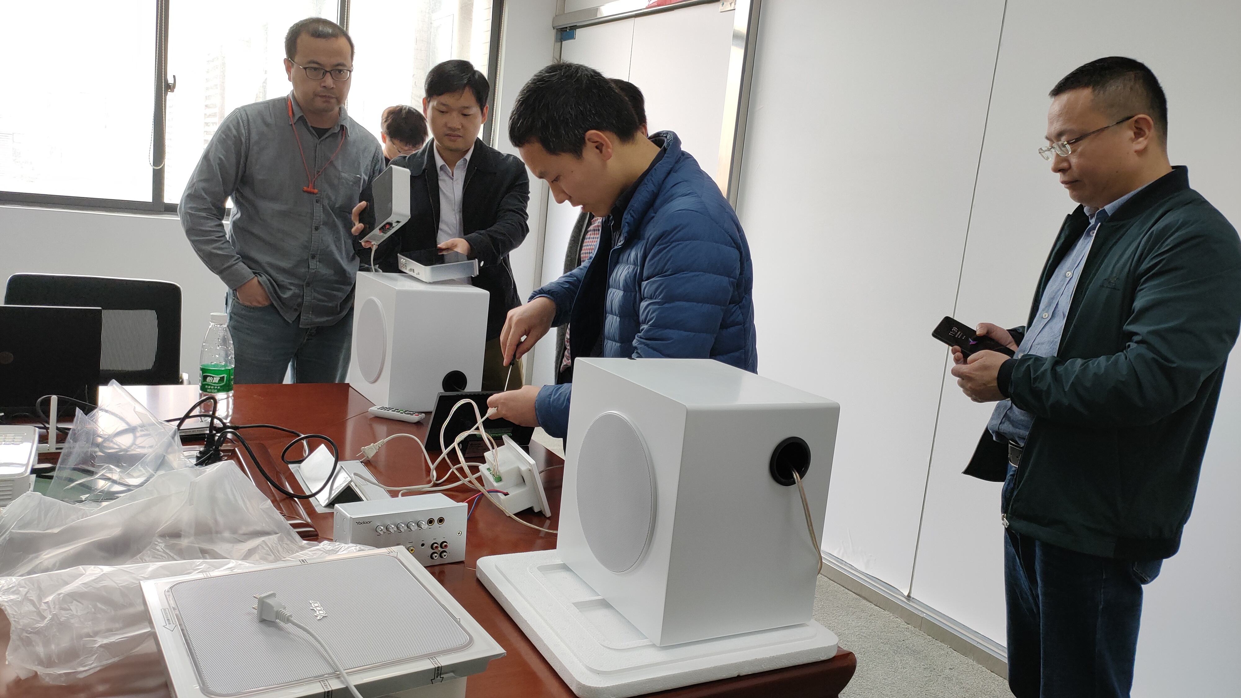 (華為智能團隊參觀了解悠達背景音樂系統)